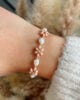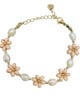 Et elegant og søtt armbånd med perler av høy kvalitet. Nydelige blomster som gleder og gir smykket et unikt preg. Unike ferskvannsperler av høy kvalitet, gullbelagt/rustfritt stål materiale. Passer fra størrelse 15cm – 18cm. Perfekt å gi som gave til noen du er glad i eller til deg selv!