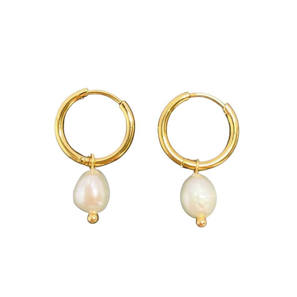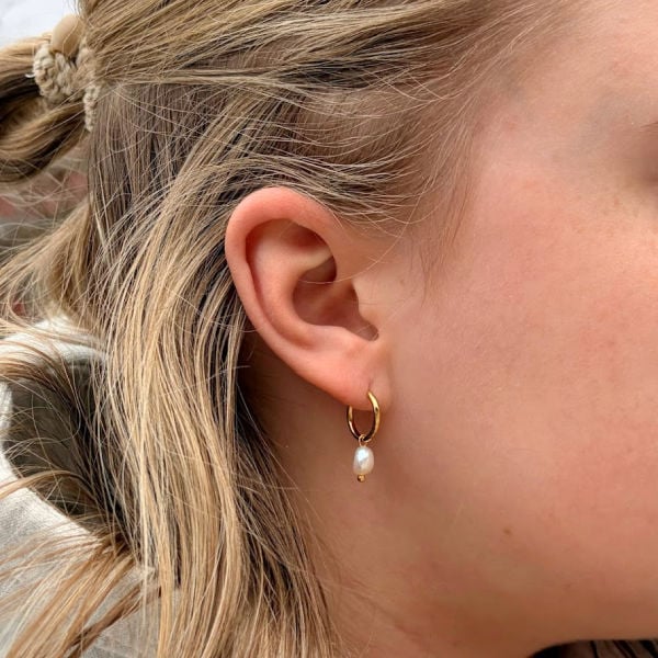 Elegante hoop øredobber med ferskvannsperle (Rustfritt stål med PVD coating, 18k gullbelagt)