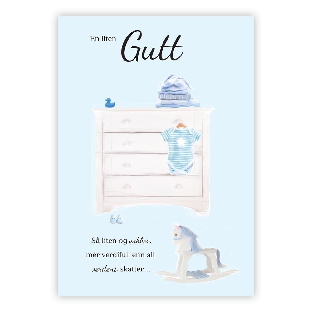 Dobbelt gratulasjonskort. En liten gutt. Så liten og … Konvolutt medfølger. Str. 11,5 x 17 cm