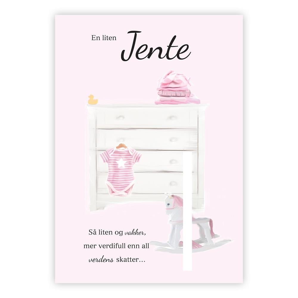 Dobbelt gratulasjonskort. En liten jente. Så liten og … Konvolutt medfølger. Str. 11,5 x 17 cm