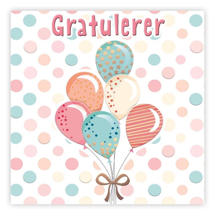 Dobbelt gratulasjonskort med konvolutt. Tekst: Gratulerer.