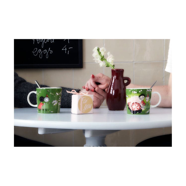 Tufsla og Vifsla er en uatskillelig duo. De to små skapningene går hånd i hånd og har utviklet et eget språk. Da Mummiene traff dem for første gang, hadde de med seg en mystisk reiseveske. På den grønne Tufsla og Vifsla-koppen fra Mummiklassiker-kolleksjonen har de to bestemt seg for å avsløre hva de har i reisevesken – Kongerubinen, den enorme rubinen både Trollmannen og Hufsa er ute etter.