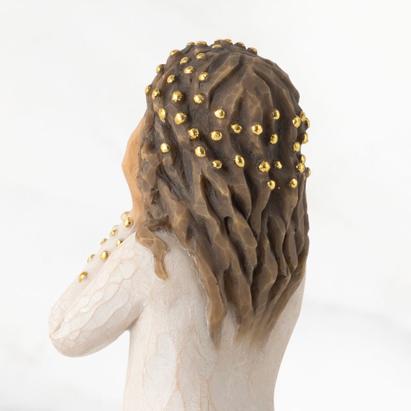 En englefigur med en gest av ærefrykt og undring nærmer seg julekrybbescenen. Gullblad i håret hennes antyder en glorie, og gull pryder ermene på kjolen hennes. Hun kan legges til julekrybbekolleksjonen som en ekstra engel, eller være en del av juledekorasjonen sammen med andre figurer av håp og undring.